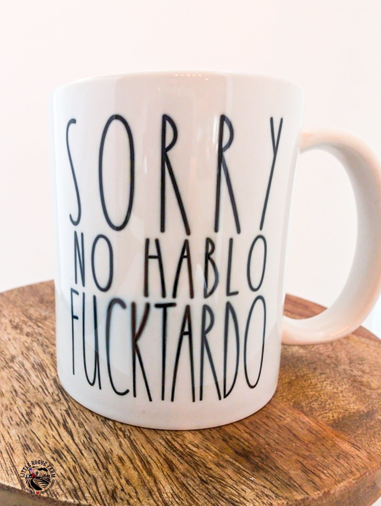 You absolutely need the "Sorry No Hablo Fucktardo" Coffee Cup – Sip with a Smile from Little Rogue Farm!