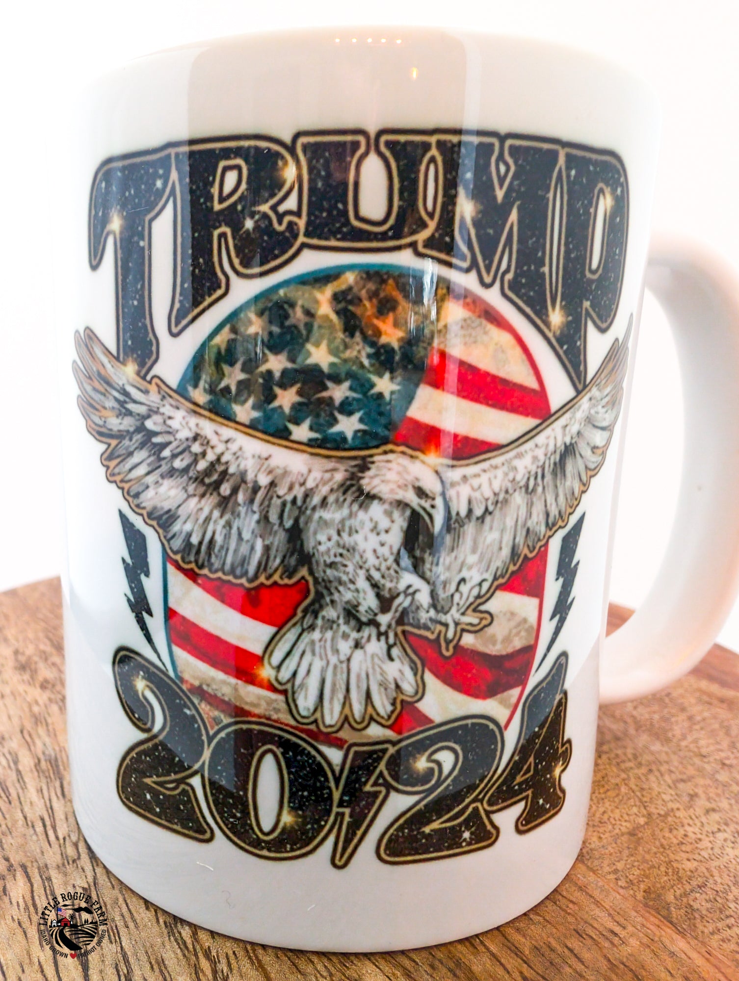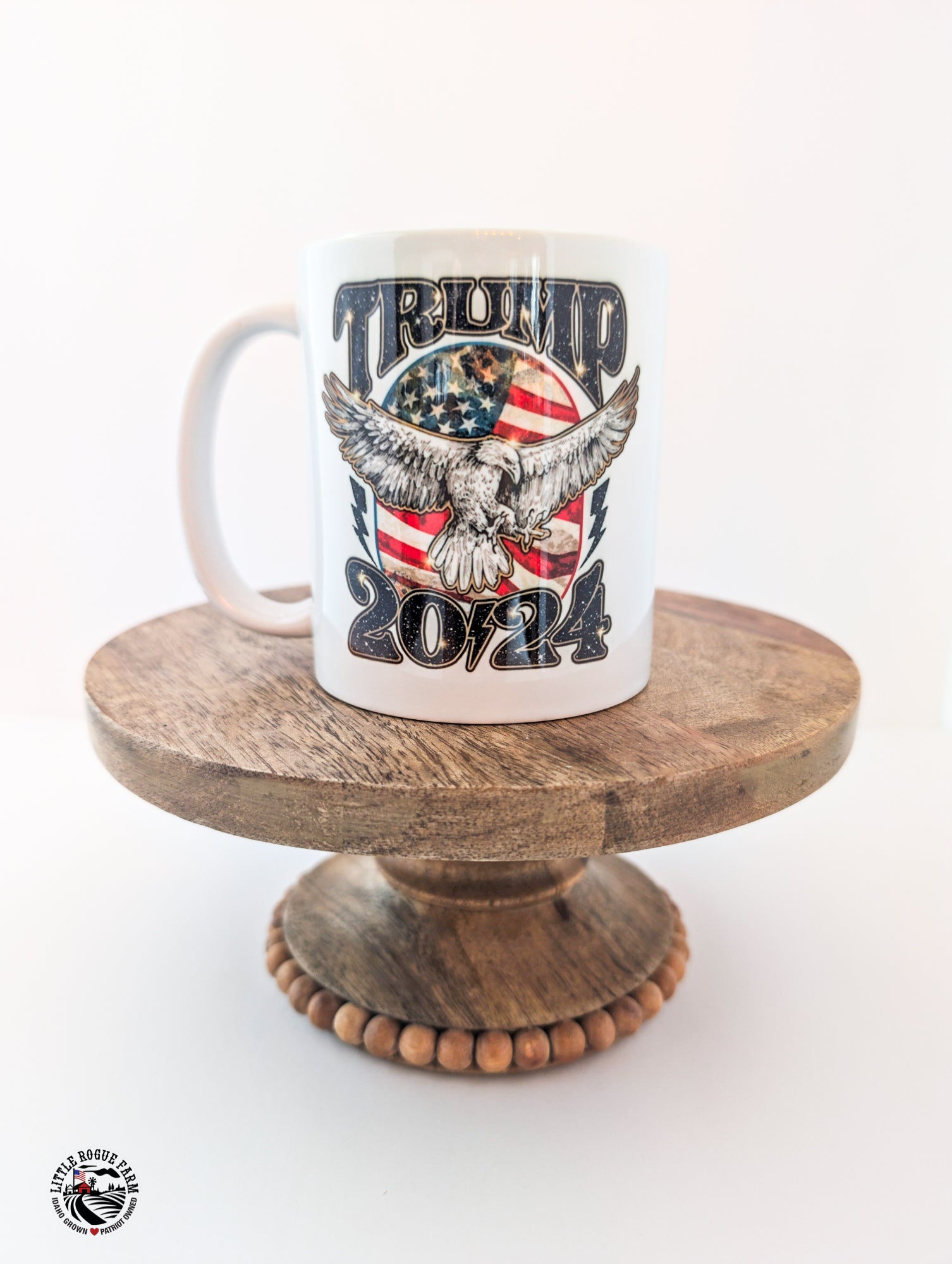 Introducing the "Trump 2024 Eagle Flag" Coffee Cup – Sip with a Smile from Little Rogue Farm!