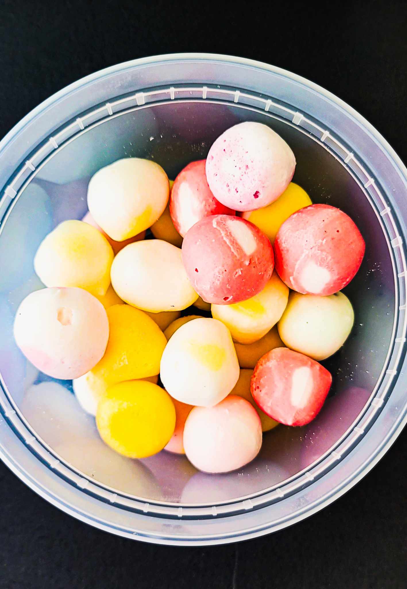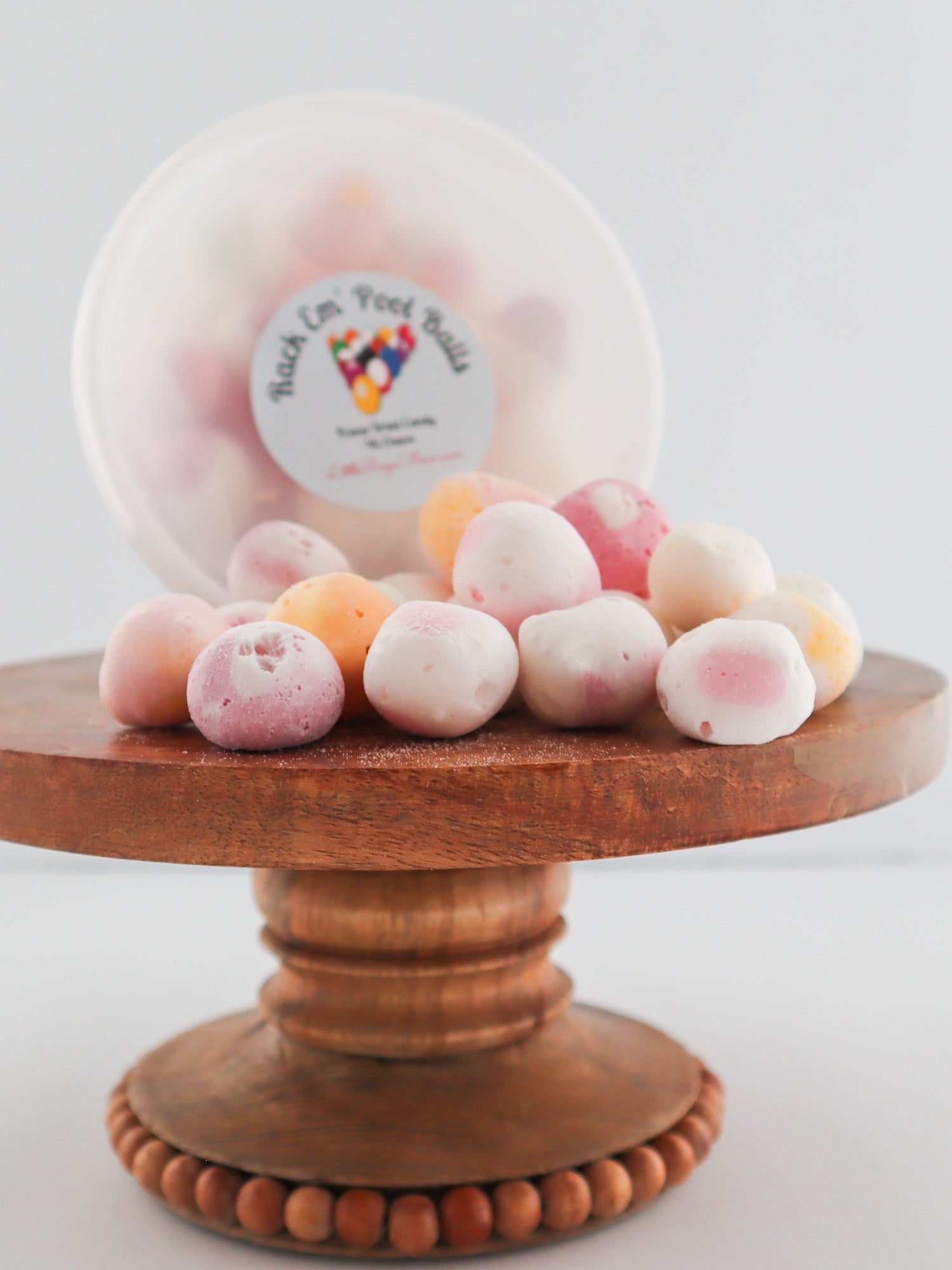 - Rack Em' Pool Balls: These are freeze-dried H i-C h e w candies in multiple flavors. Available in two sizes: 16oz Medium Container or 32oz Large Container. Net weight varies from 2.5 to 3 ounces.